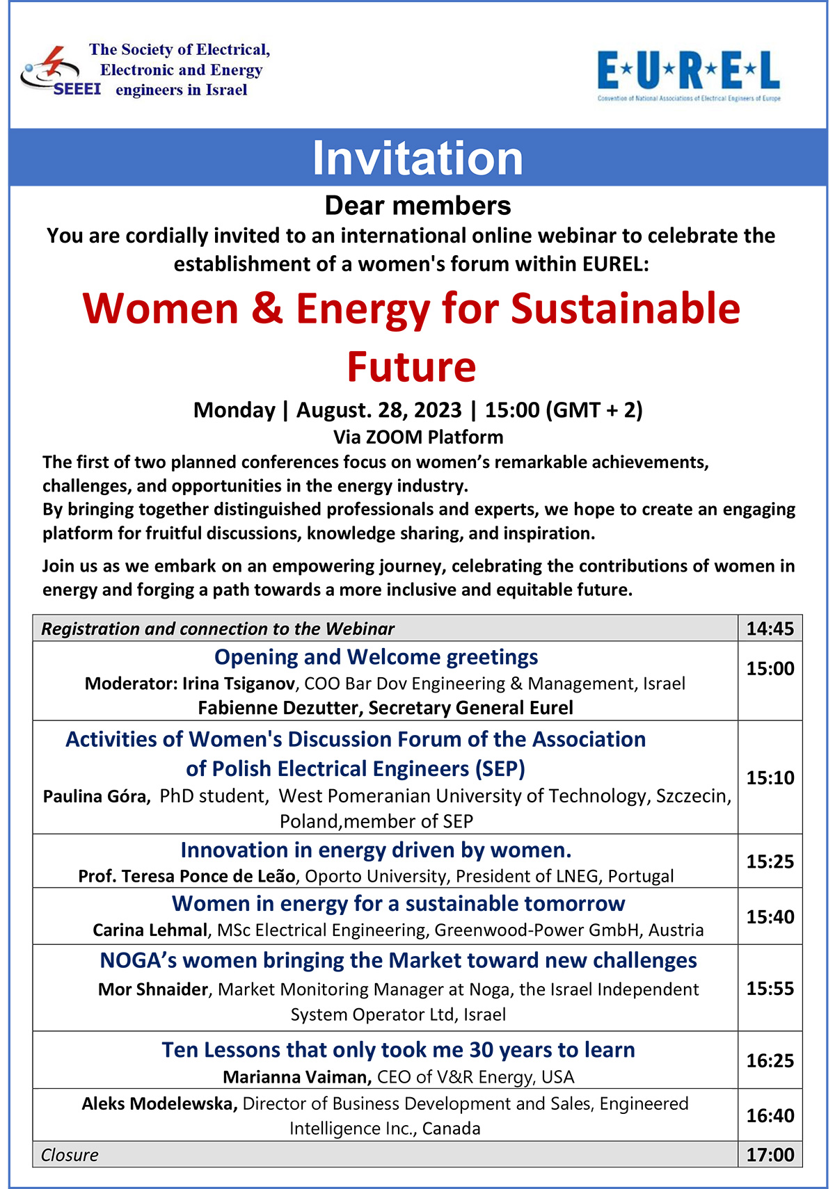 Serdecznie zapraszamy na międzynarodową konferencję (webinarium/online) z okazji ustanowienia forum kobiet w ramach federacji EUREL: