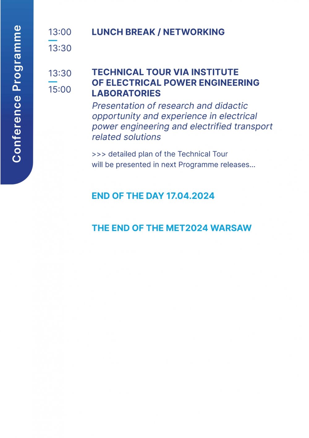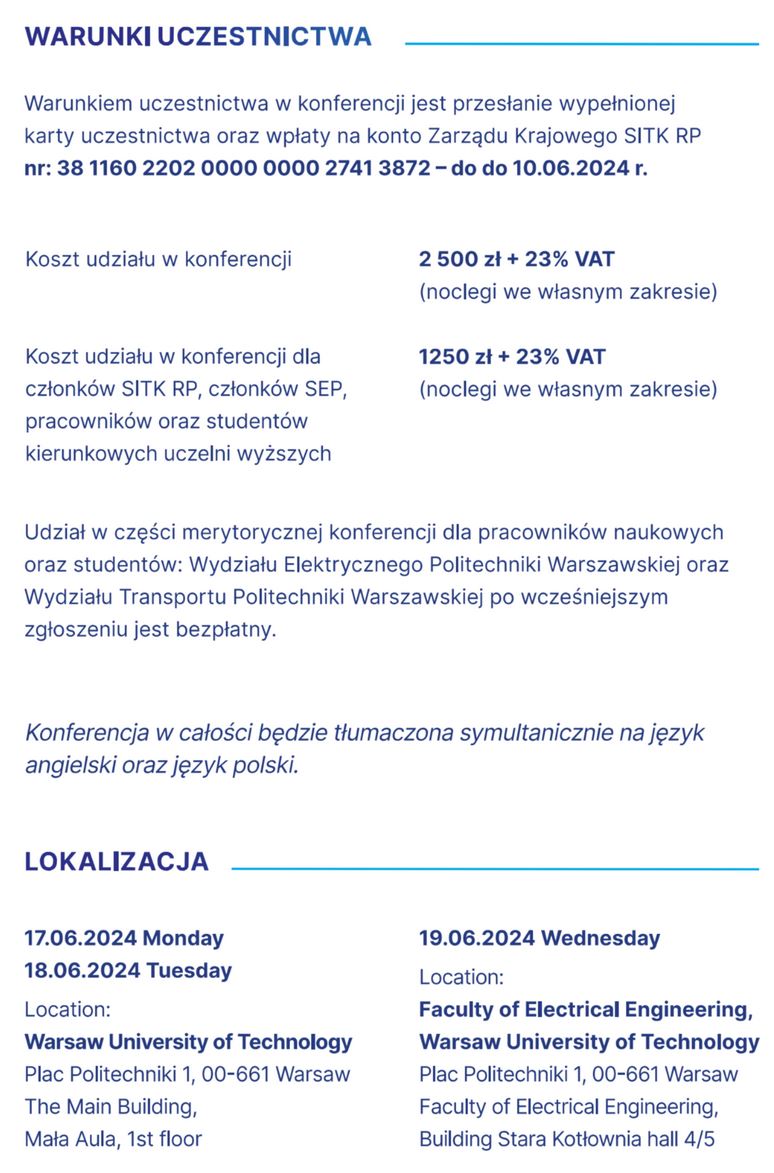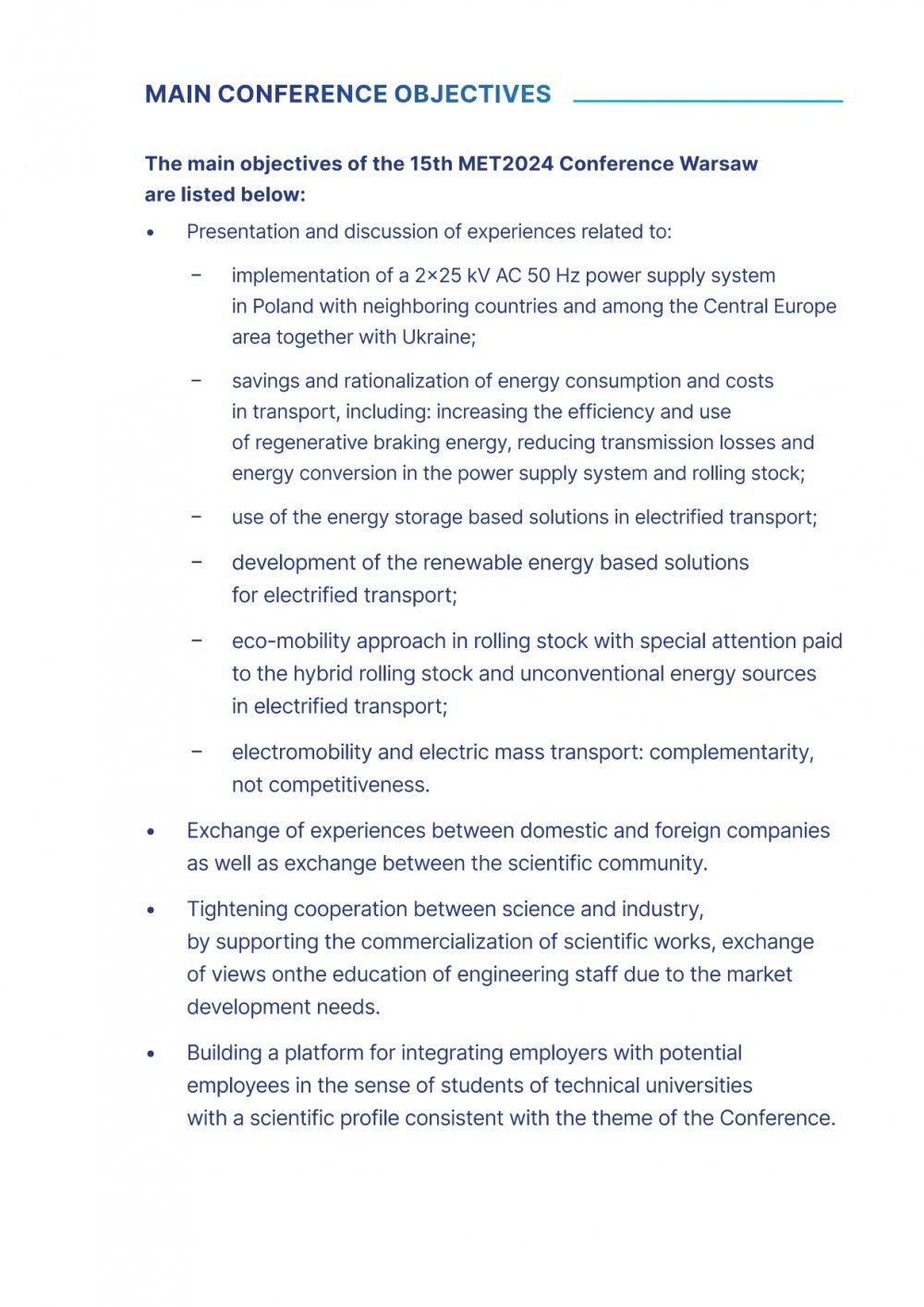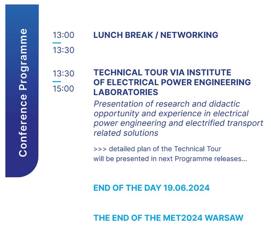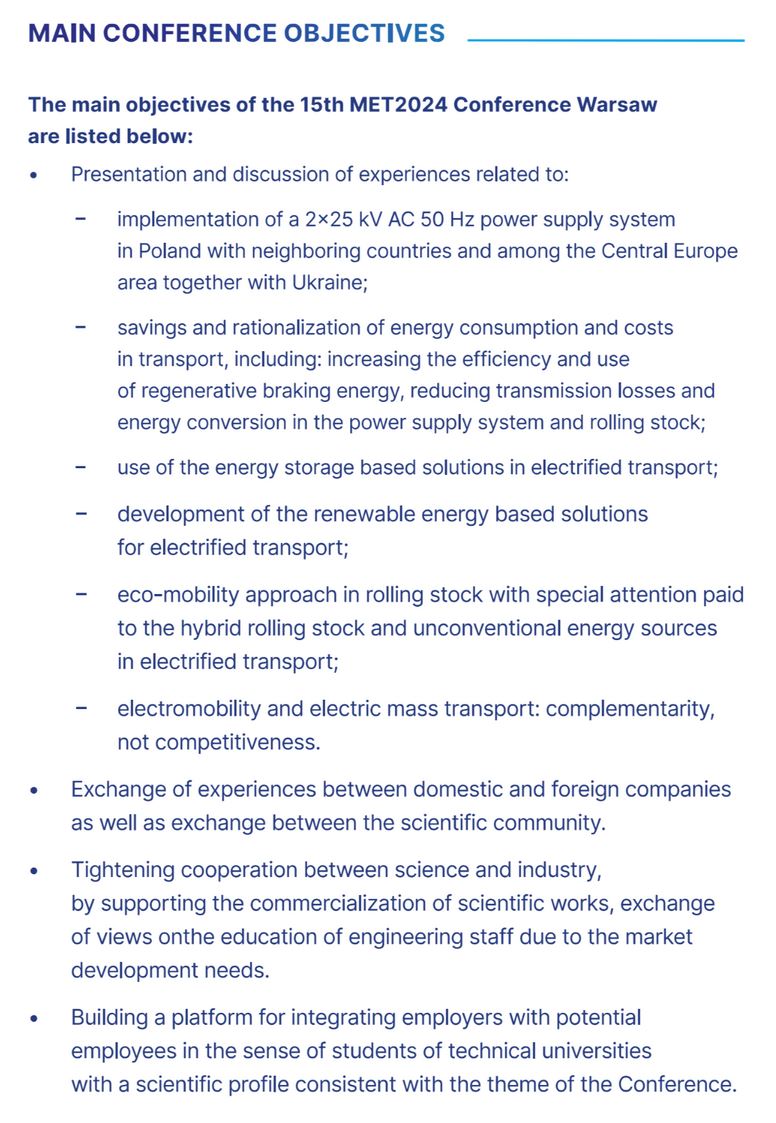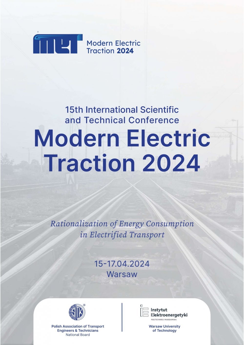NOWY TERMIN XV Międzynarodowej Konferencji Naukowo-Techniczna Modern Electric Traction MET 2024. Racjonalizacja Zużycia Energii w Transporcie Zelektryfikowanym
