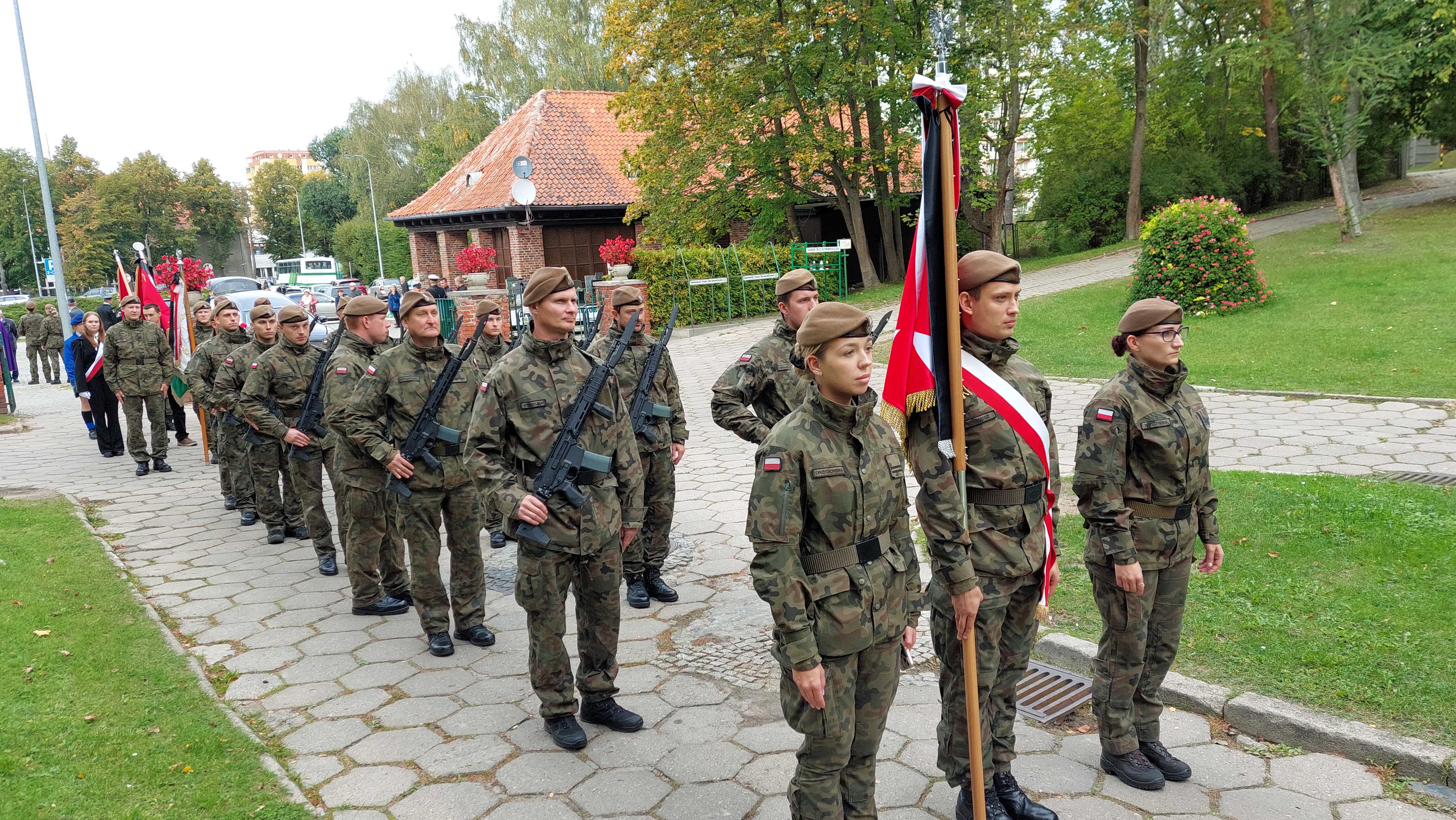 Kompania Wojsk Obrony Terytorialnej przygotowana do przemarszu w kondukcie